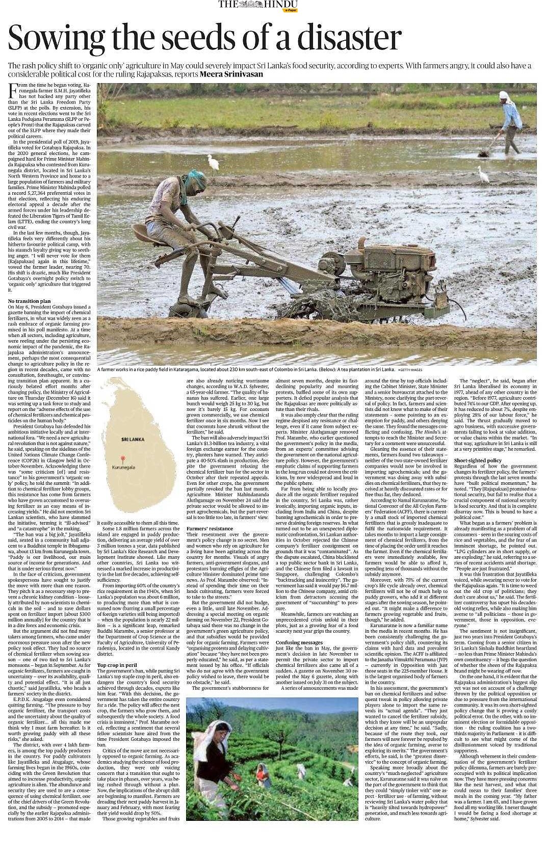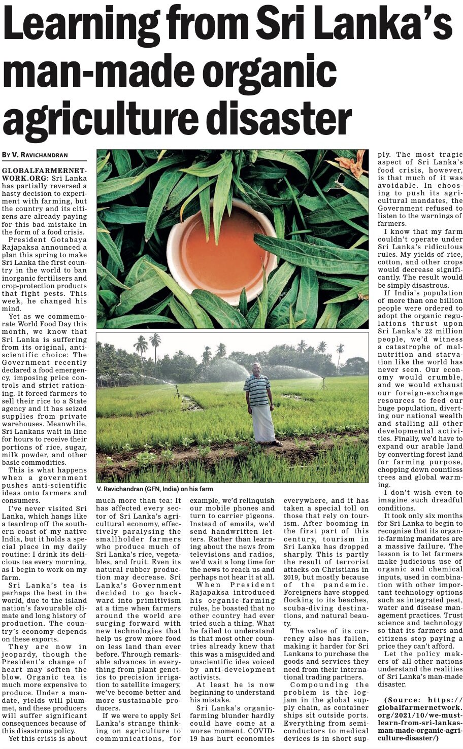 Šri Lanka je prošle godine izvela zao eksperiment na svojim građanima. Pod utjecajem aktivista za organsku hranu i protiv GMO-a, vlada je zabranila uvoz sintetičkih pesticida i nametnula prijelaz zemlje na potpuno organsku poljoprivredu, ostavljajući veliku većinu poljoprivrednika bez pristupa vitalnim alatima koje koriste za uzgoj usjeva o kojima njihova zemlja ovisi.